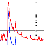 From the GOES satellites, this is a near real time measurement of solar radiation in the form of X-rays. Solar flares are readily apparent as spikes in the plot, but it is important to remember that not all flares are associated with a CME. Solar flares are classified according to their peak intensity and fall into "bins" of C, M, or X class. "Major flares" are those reaching M5 or higher. Caution must be used here, but typically a flare associated with a large CME will have a very rapid rise, slow decay signature. CMEs can and do occur when there is no flare and little or no X-ray signature is apparent. In addition, many large CMEs which will show up in X-ray data are not "aimed" at Earth and will have little or no impact on conditions here. Still, this is a very useful chart that shows when conditions are getting stormy on the sun.